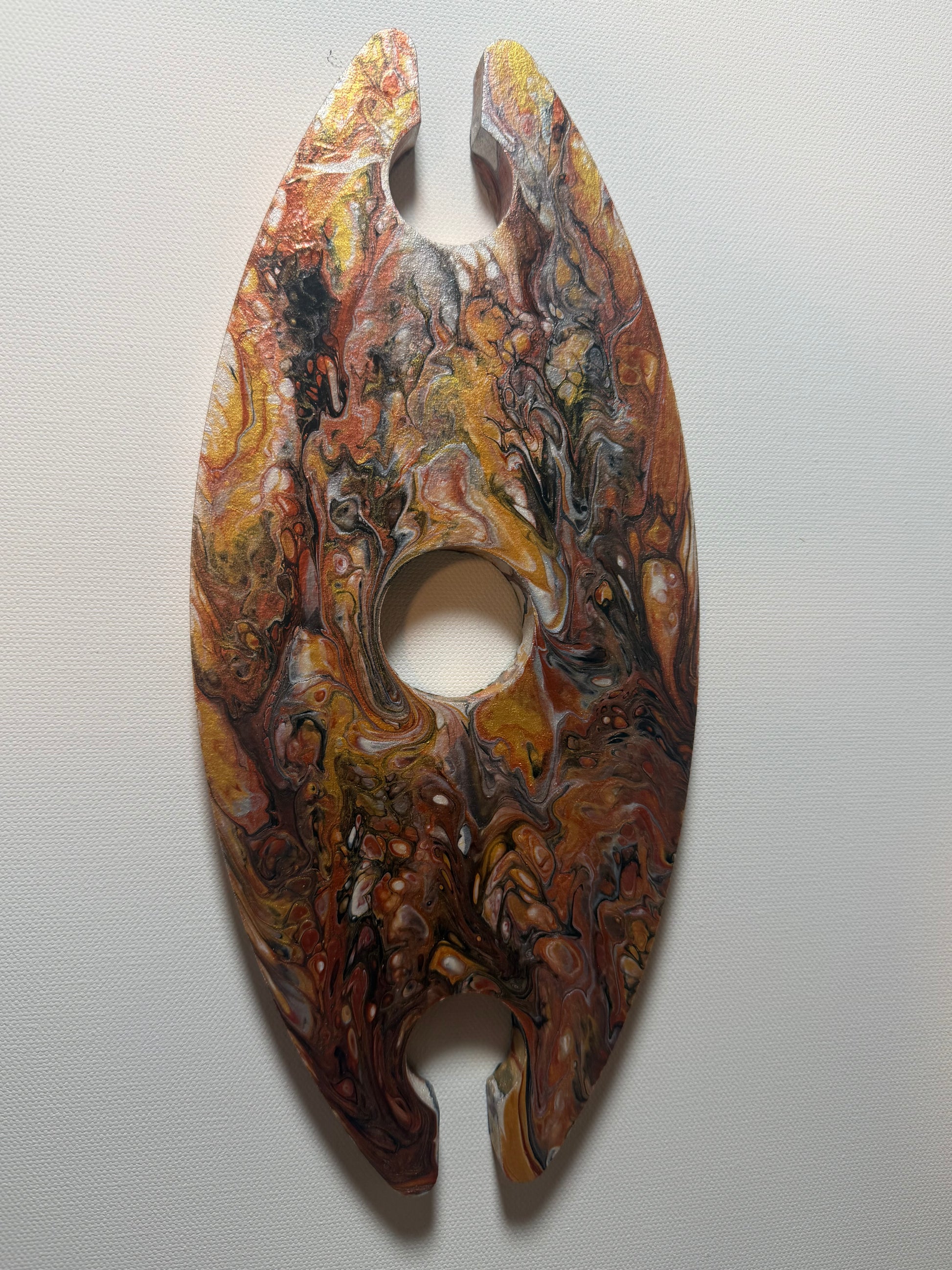 Hand painted wine caddy with brilliant colors and unique design. Adds a beautiful focal point to any table.